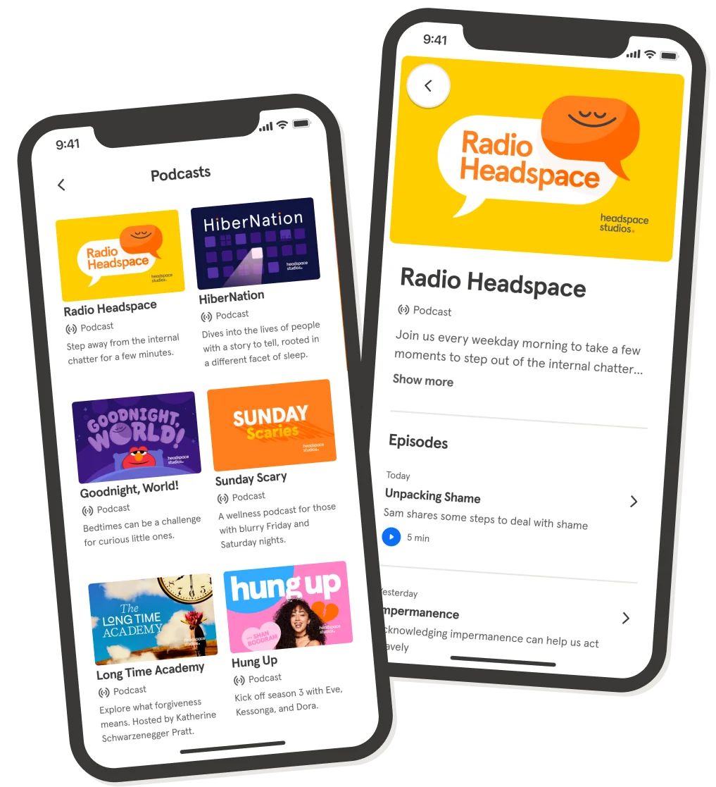 Need a mindful moment on the go? Critically-acclaimed shows from Headspace Studios are available to stream on all platforms, and Headspace members can listen in-app.